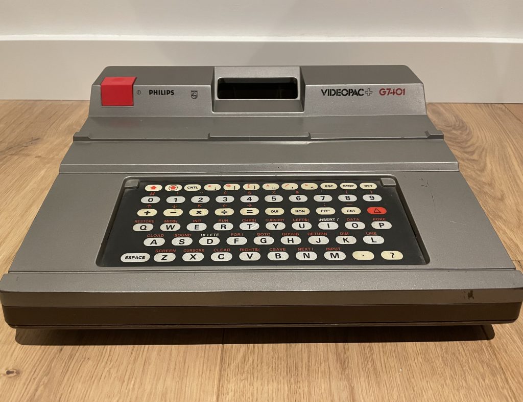 The G7401 is essentially identical to the G7400, but uses a Péritel/DIN plug for video output instead of a normal TV antenna plug. The Péritel is a standard French 40-pin connector, equivalent to SCART, which allows video input devices to be directly recognized by televisions without setting up a channel. This makes it easier to use outside of PAL regions, in countries such as the U.S. Furthermore the connection gives the G7401 the possibility to output an RGB-signal which greatly improves the image quality. The G7401 is the last Videopac console sold by Phillips. Some variants even have software that recognizes the G7401 as the prototype ‘Odyssey 3’ which was never released.