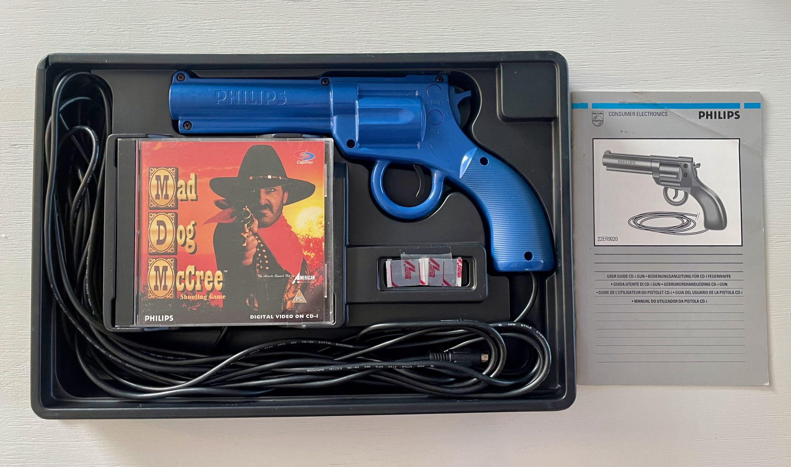 Philips introduced the Peacekeerp Revolver as a bundle with the light gun game Mac Dog McCree in 1994. The bundle was retailing for $60 dollars. The bundle game with a sensor which needed to be placed on or in front of the TV in order for it to register movement. Furthermore the gun required calibration, and this was accomplished via menu options in all supported games.