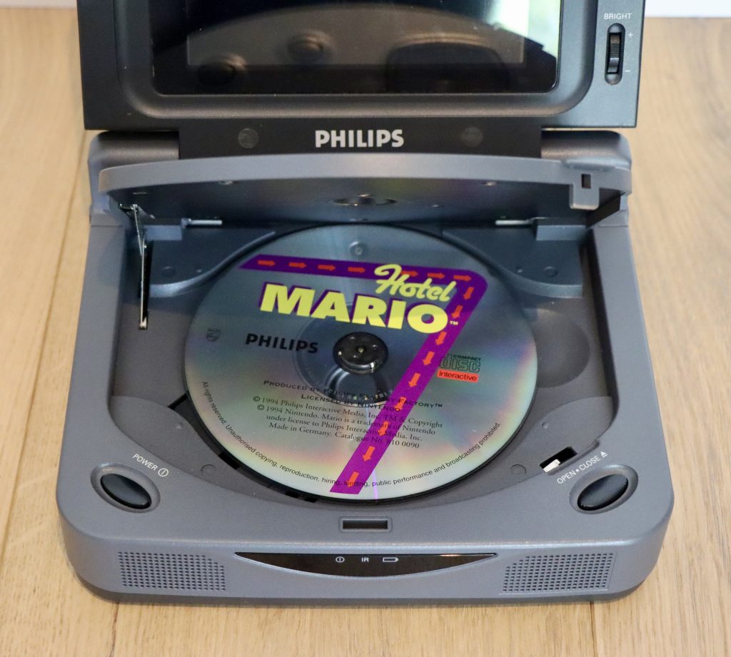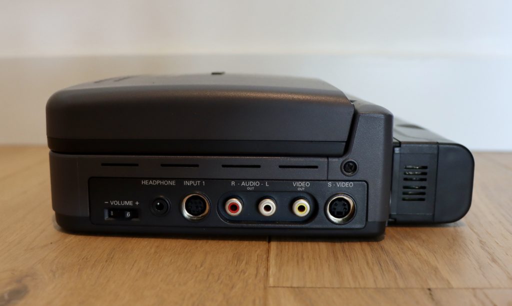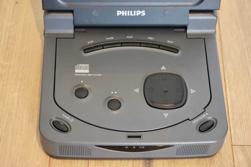 The CD-i 370 is gray and has a clamshell LCD screen. Due to the DVC and its enhanced portability, the 370 was more portable than its predecessor’s. Some even argue that it is also a handheld gaming device and yes, it could play CD-i games, just like its predecessors 350 and 360. However, the 350 was only portable in the sense that it was smaller and more compact than regular CD-i systems and had a built-in screen, but it was far from a handy device. It’s thicker and heavier in real life than it looks in the pictures, and it also came with a huge power brick.