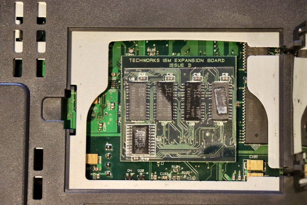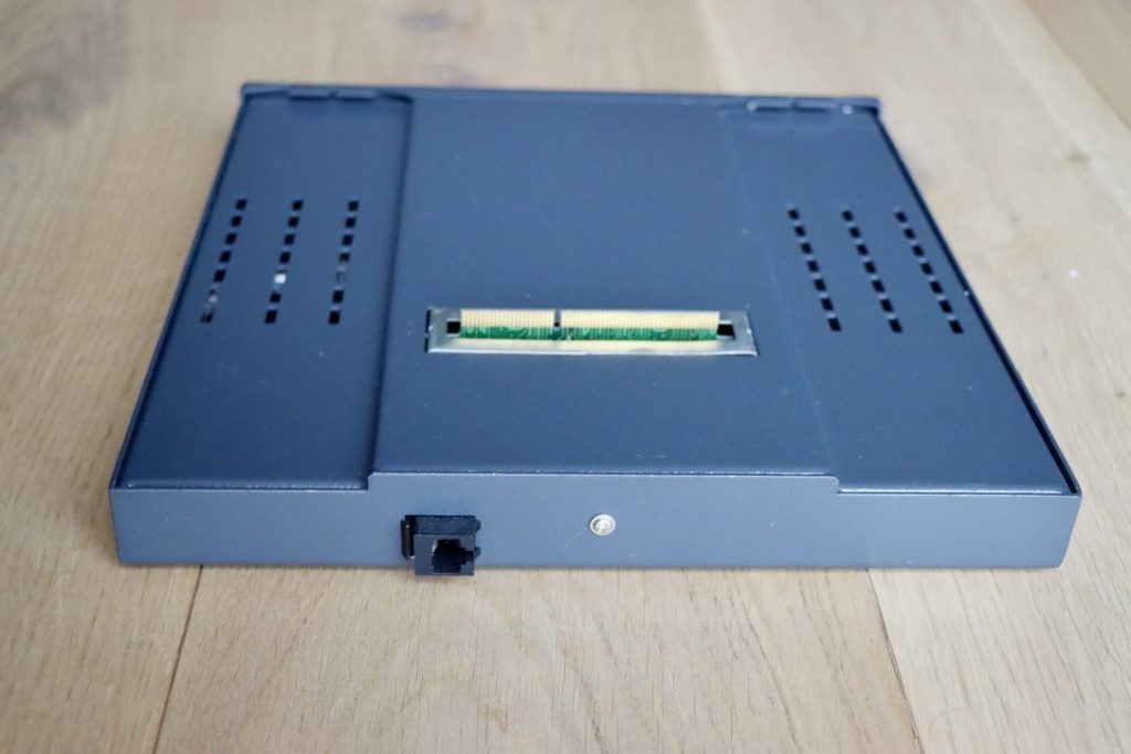 Unlike the Bandai Pippin, the KMP-2000 could be equipped with more RAM. In addition, the SCSI interface on the bottom made it possible to expand the Pippin in the future. For example, with an internet connection as shown in the photo below.