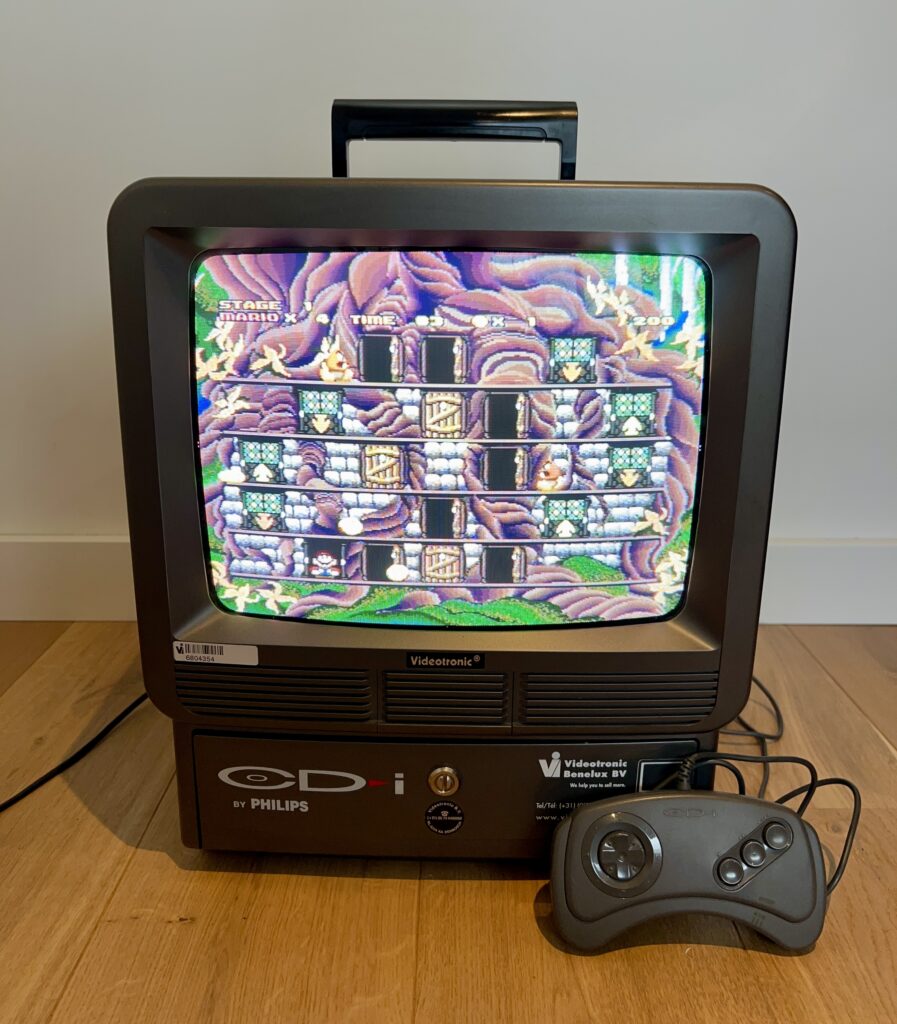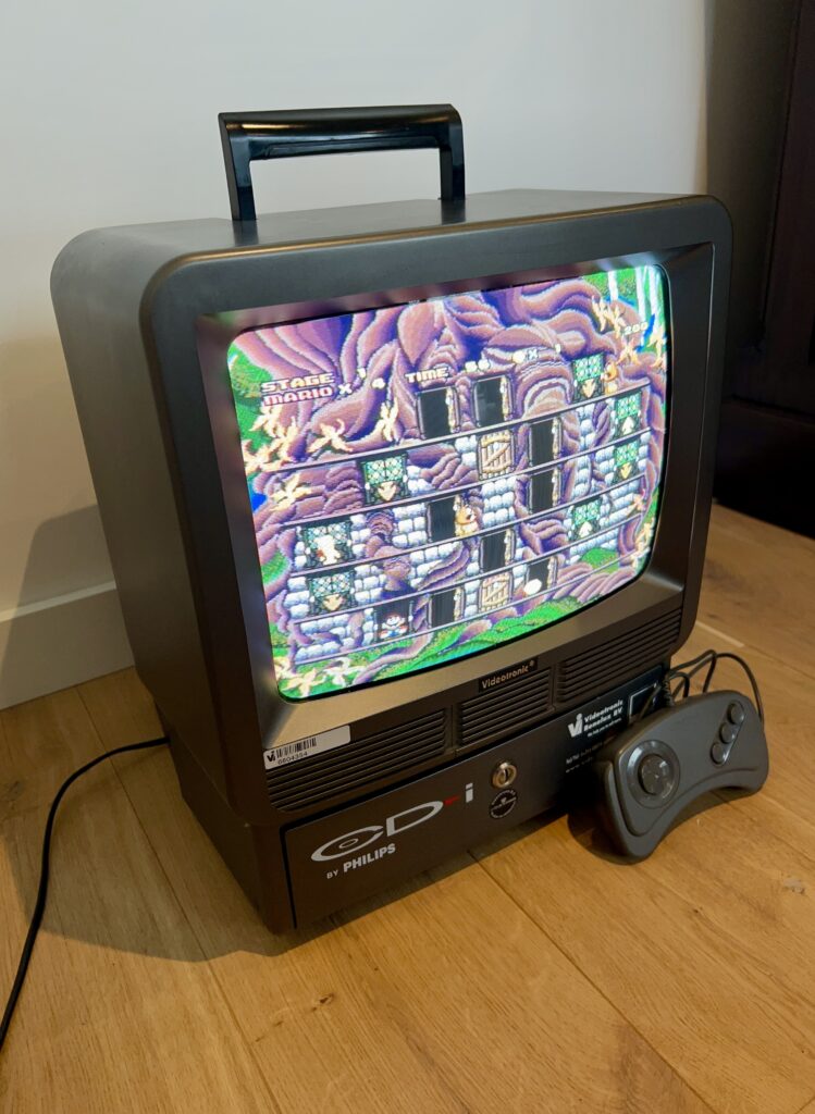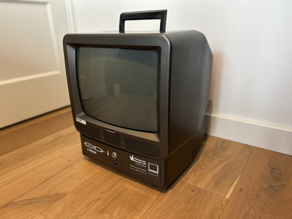 The CD-i M360 POS is a TV with a built-in CD-i player from the Dutch company Videotronic. This TV is comparable to the B&O AV5 and the Philips TCDI30, as these were also TVs that had a built-in CD-i player. However, only the M360 POS was a professional TV/CD-i hybrid, where the aforementioned TVs were aimed at consumers.